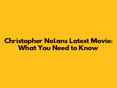 Christopher Nolan's Latest Movie: What You Need To Know