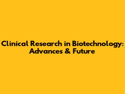 Clinical Research In Biotechnology: Advances & Future