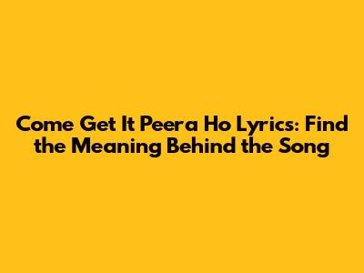 Decoding the Lyrics of Come Get It Peera Ho
