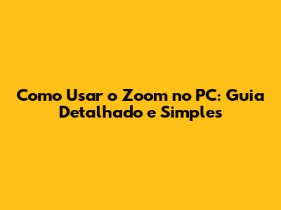 Como Usar O Zoom No PC: Guia Detalhado E Simples