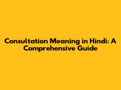 Consultation Meaning In Hindi: A Comprehensive Guide