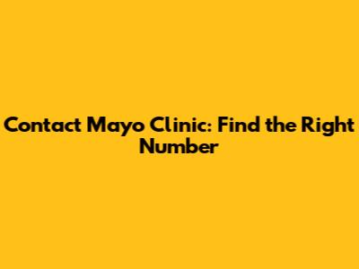 Contact Mayo Clinic: Find The Right Number