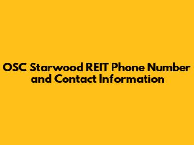 Contact OSC Starwood REIT: Phone & Information