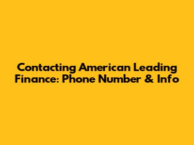 Contacting American Leading Finance: Phone Number & Info