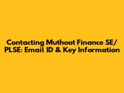 Contacting Muthoot Finance SE/PLSE: Email ID & Key Information