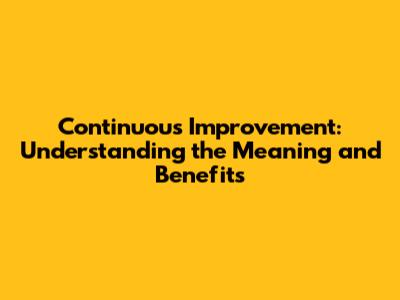 Continuous Improvement: Understanding The Meaning And Benefits
