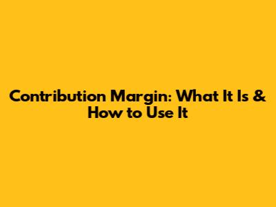 Contribution Margin: What It Is & How To Use It