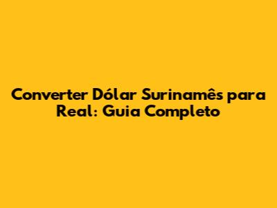 Converter Dólar Surinamês Para Real: Guia Completo