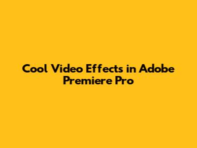 Cool Video Effects In Adobe Premiere Pro