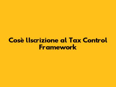 Cos'è L'Iscrizione Al Tax Control Framework