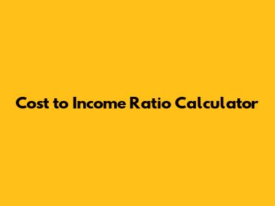 Cost To Income Ratio Calculator: Manage Your Finances