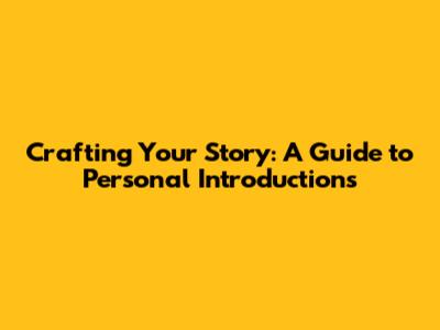 Crafting Your Story: A Guide To Personal Introductions