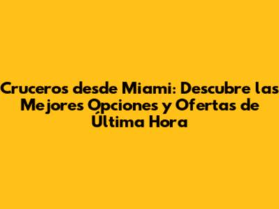 ¡Hola, cruceristas! Si estás buscando una escapada inolvidable y te encuentras en Miami o planeas visitarla, estás en el lugar correcto. En este artículo, te guiaremos a través de todo lo que necesitas saber sobre los cruceros desde Miami, desde las últimas ofertas y destinos populares hasta consejos prácticos para planificar tu viaje perfecto. Así que, prepárense para zarpar y descubrir el mundo a bordo de un crucero.