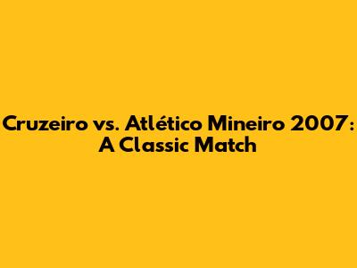 Cruzeiro Vs. Atlético Mineiro 2007: A Classic Match
