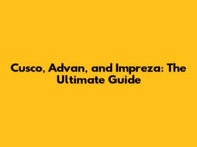 Cusco, Advan, And Impreza: The Ultimate Guide