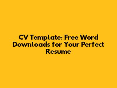 CV Template: Free Word Downloads For Your Perfect Resume