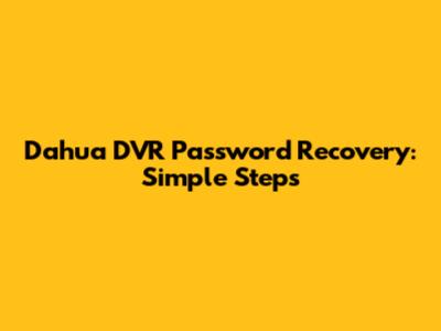 Dahua DVR Password Recovery: Simple Steps