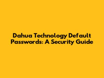 Dahua Technology Default Passwords: A Security Guide