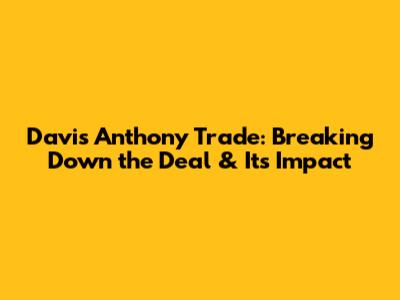 Davis Anthony Trade: Breaking Down The Deal & Its Impact