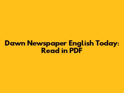 Dawn Newspaper English Today: Read In PDF