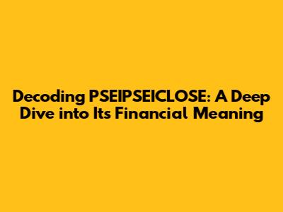 Hey finance enthusiasts and curious minds! Ever stumbled upon the term PSEIPSEICLOSE and wondered what it actually means? Well, you're in the right spot! We're about to embark on a journey to decode this financial jargon and understand its significance. Let's break down PSEIPSEICLOSE and explore its role in the complex world of finance. This term, while perhaps not as widely known as some others, carries weight and understanding it is key to navigating financial statements and market analyses. So, grab your favorite beverage, sit back, and let's get started. We'll explore its definition, practical applications, and why it's a piece of the puzzle you should have in your financial vocabulary. Get ready to have your financial knowledge boosted!