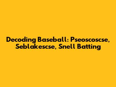 Alright baseball fanatics, let's dive deep into the fascinating, and sometimes perplexing, world of baseball! We're going to break down some terms that might sound like alphabet soup at first glance: pseoscoscse, seblakescse, and Snell batting. Don't worry if these seem like gibberish right now. By the end of this article, you'll not only understand what they mean, but you'll also be able to impress your friends with your newfound baseball knowledge.