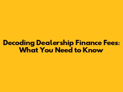 Decoding Dealership Finance Fees: What You Need To Know