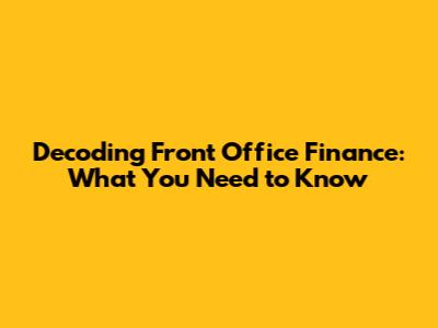 Decoding Front Office Finance: What You Need To Know