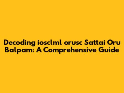 Decoding 'iosclml Orusc Sattai Oru Balpam': A Comprehensive Guide