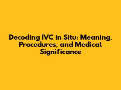 Decoding IVC In Situ: Meaning, Procedures, And Medical Significance