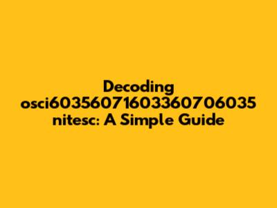 Given the structure and potential contexts, let's explore some possible interpretations of "osci60356071603360706035 nitesc". Here are a few scenarios to consider: