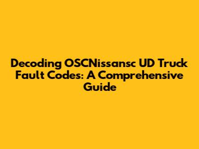 Troubleshooting Common Fault Codes in OSCNissansc UD Trucks