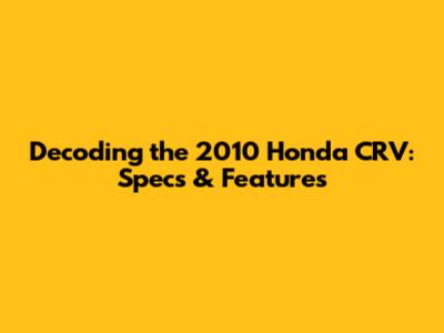 Decoding The 2010 Honda CRV: Specs & Features