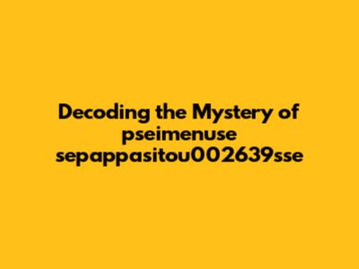 Decoding The Mystery Of Pseimenuse Sepappasitou002639sse