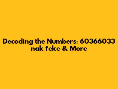 Decoding The Numbers: 60366033 Nak Feke & More