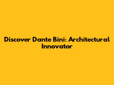 Discover Dante Bini: Architectural Innovator