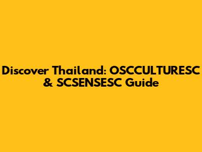 Discover Thailand: OSCCULTURESC & SCSENSESC Guide