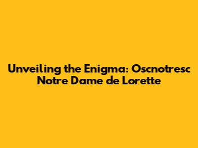 Discovering The Secrets Of Oscnotresc Notre Dame De Lorette