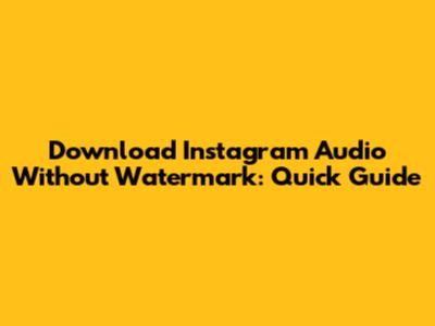 Download Instagram Audio Without Watermark: Quick Guide