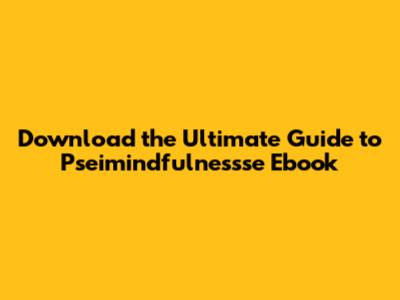 Download The Ultimate Guide To Pseimindfulnessse Ebook