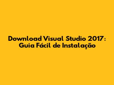 Guia Passo a Passo para Baixar e Instalar o Visual Studio 2017