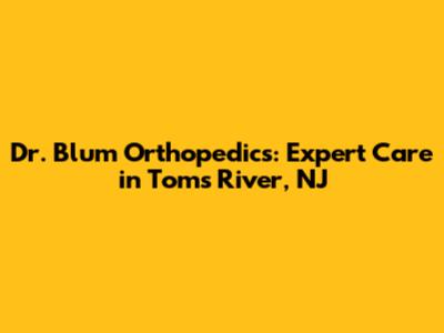 Dr. Blum Orthopedics: Expert Care In Toms River, NJ