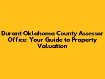 Hey everyone! Today, we're diving deep into the world of property assessment, focusing specifically on the Durant Oklahoma County Assessor's Office. If you're a property owner in Durant, Oklahoma, understanding how your property is valued is super important. It directly impacts your property taxes, so knowing the ins and outs of the assessor's role can save you a headache and maybe even some cash. We're going to break down exactly what the Durant Oklahoma County Assessor does, how they determine property values, and what you need to know to navigate the process smoothly. So, buckle up, guys, because we're about to demystify property assessment in Durant!