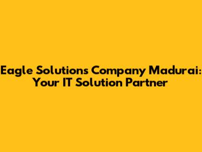 Hey guys! Welcome to a deep dive into Eagle Solutions Company in Madurai, your one-stop shop for all things IT and tech solutions. If you're based in Madurai and looking for reliable, innovative, and top-notch tech services, then you've absolutely landed in the right place. We're talking about a company that understands the unique tech landscape of Madurai and is dedicated to providing tailored solutions to meet your specific needs. From small businesses to large enterprises, Eagle Solutions has a proven track record of delivering exceptional results. Let's explore what makes Eagle Solutions a leader in the IT industry and why they are the go-to choice for businesses in Madurai.