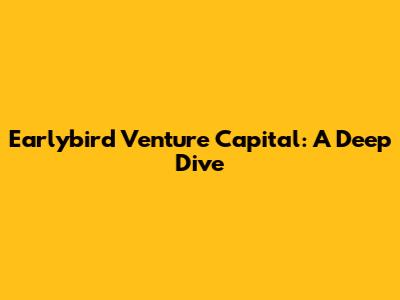 Earlybird Venture Capital: A Deep Dive