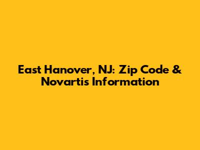 East Hanover, NJ: Zip Code & Novartis Information