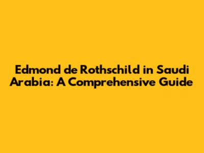 Edmond De Rothschild In Saudi Arabia: A Comprehensive Guide