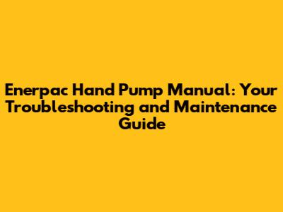 Enerpac Hand Pump Manual: Troubleshooting & Maintenance