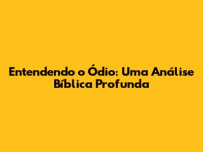 Entendendo O Ódio: Uma Análise Bíblica Profunda