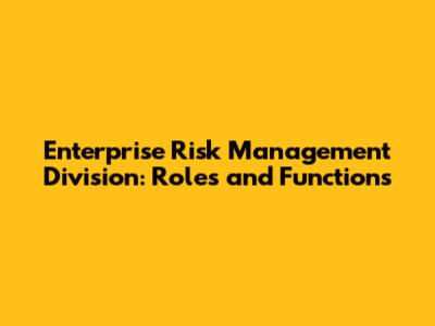 Enterprise Risk Management Division: Roles And Functions